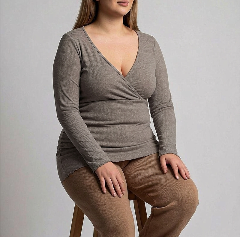 تیشرت زنانه آستین بلند یقه باز طرح کبریتی برند esmara