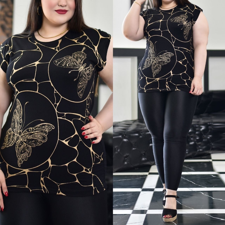 تاپ زنانه آستین سرخود طرح با چاپ طلایی