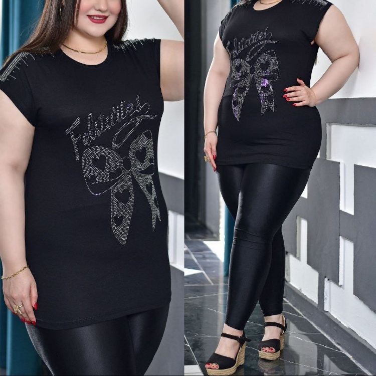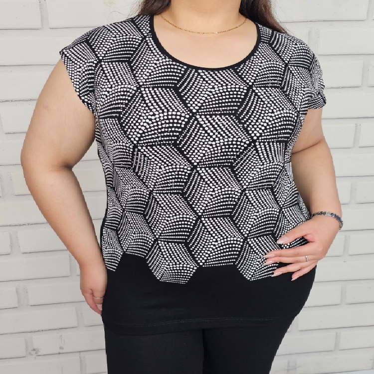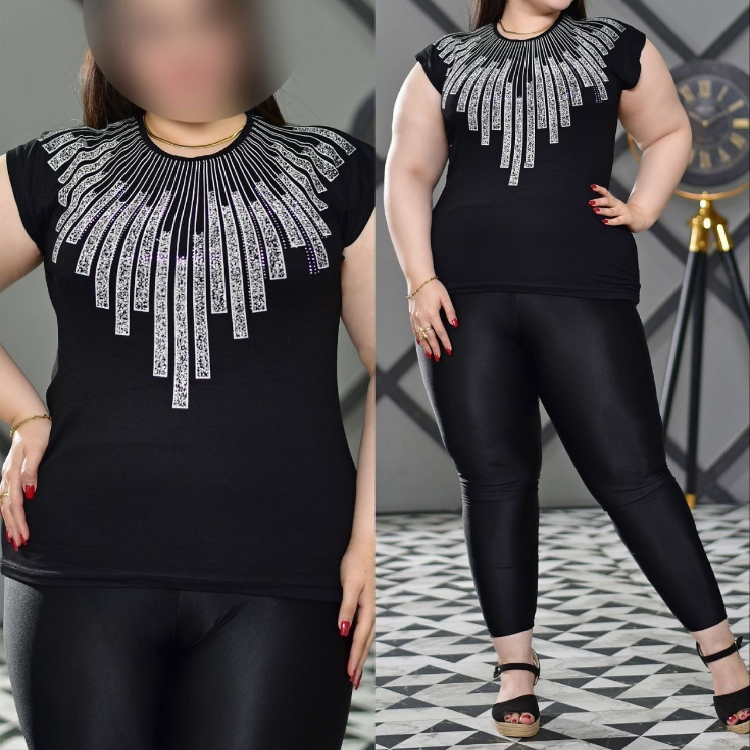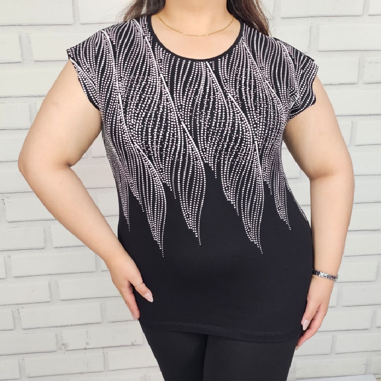 تاپ زنانه آستین سرخود طرح با چاپ و نگین